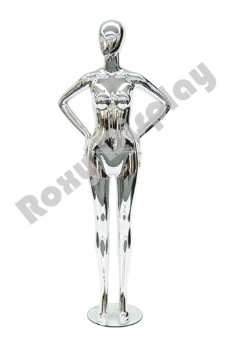 (PS-A44CM) ROXY DISPLAY® Special designed, egg head female mannequin, standing pose and full body chromed, high quality, with turnable egghead , and turnable arms.