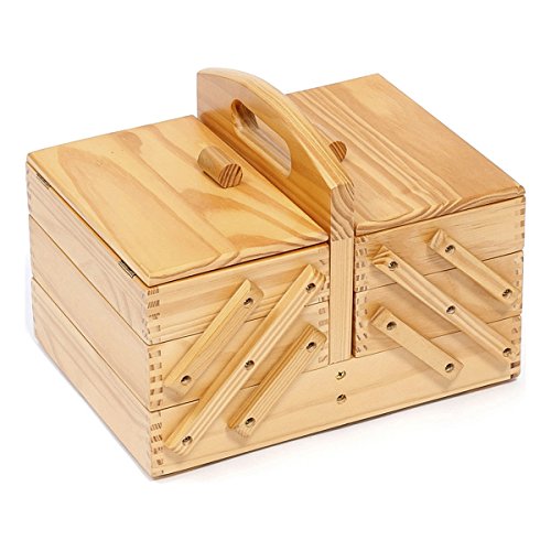 Hobby Gift Premium Quality Wooden Sewing Box Solid Pine Light Wood Small (23 x 31 x 34cm) 3 Tier Cantilever